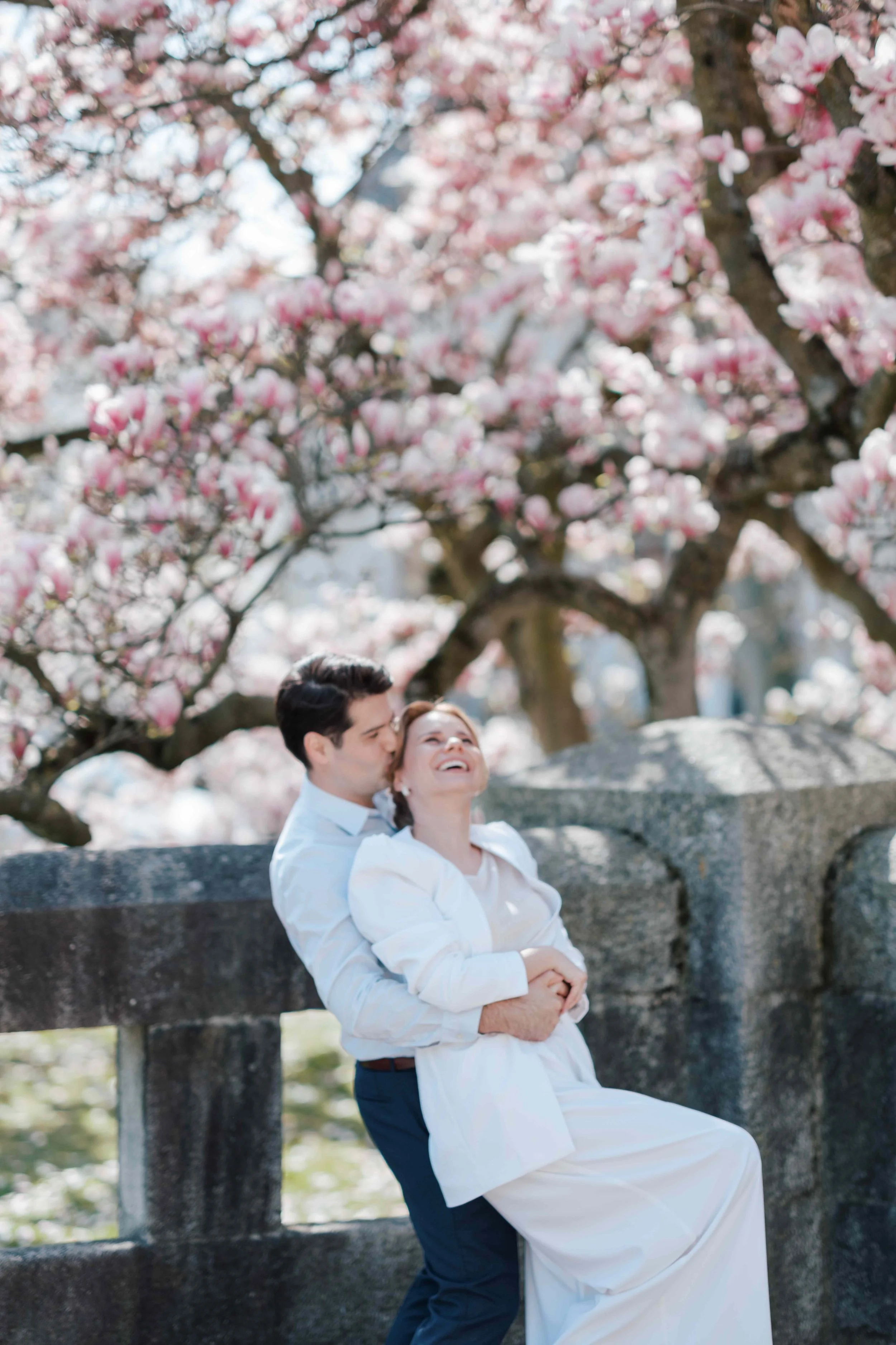 In the afternoon, they took a walk in the charming city of Basel. Lovingly lost in the streets… They ended up in the garden in front of the St. Paul’s Church filled with blooming magnolia trees. It was the perfect location for a little improvised dance.